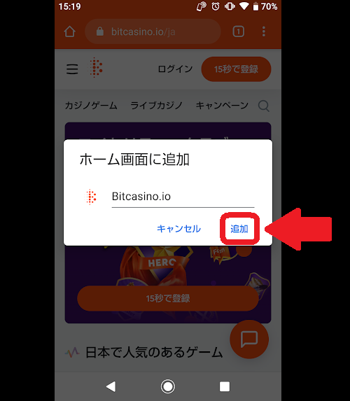 AndroidスマホのChromeでビットカジノをアプリ化する方法