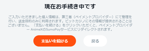 上の画面が表示されたら、「支払いを続ける」をタップもしくはクリックします。