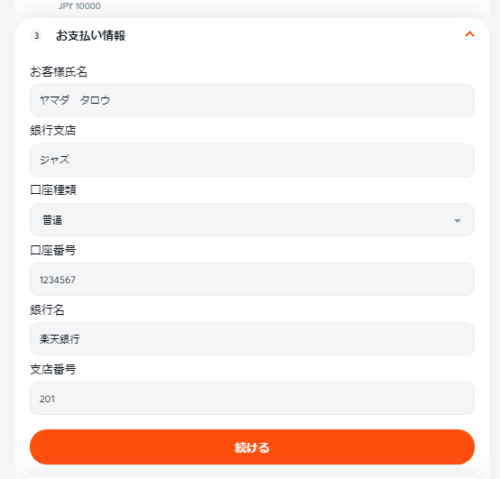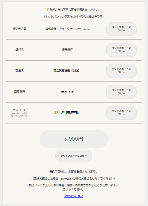 STEP10:指定の銀行口座に振り込んだら入金完了