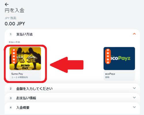Sumo PayとecoPayzが表示されるので、「Sumo Pay」を選択します。