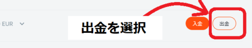 STEP2:JPY(日本円)の「出金」を押す