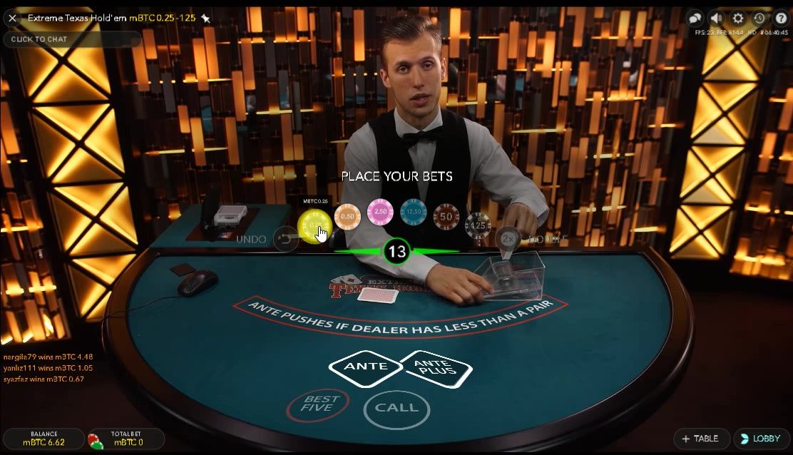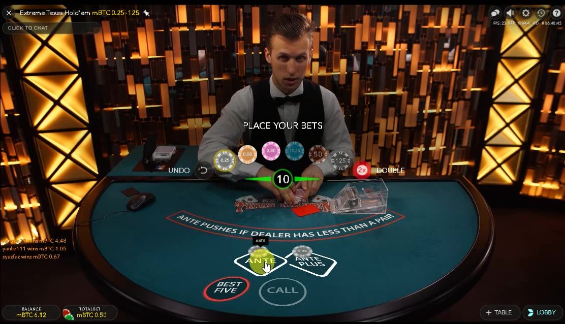 ライブカジノ【ビットカジノ】EVOLUTION GAMING エキストリームテキサスホールデム