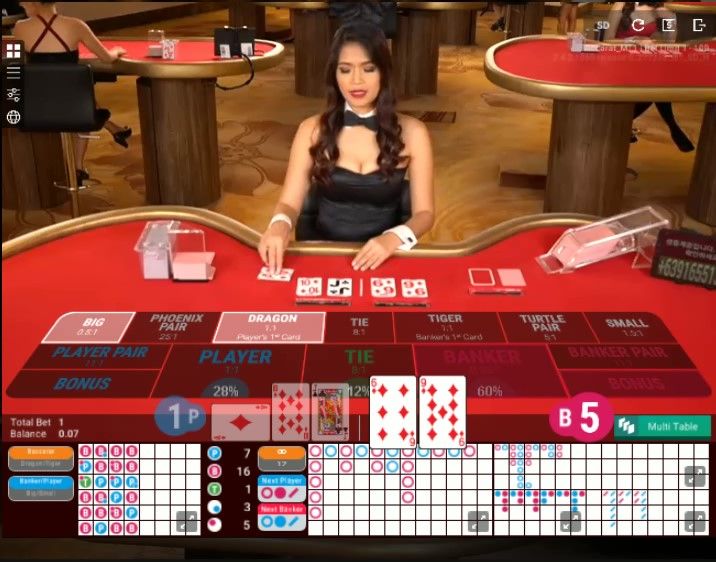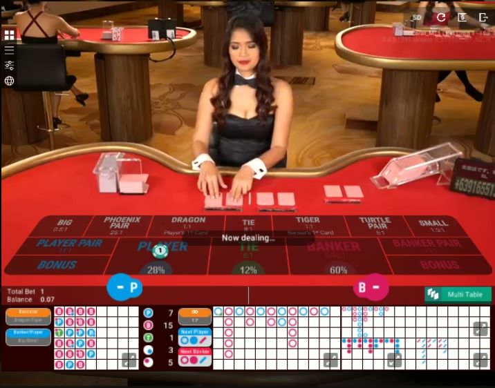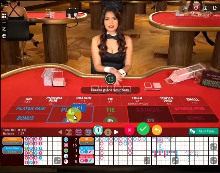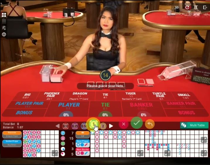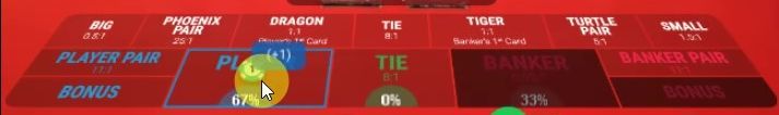 TIEが1回出ています。バカラのテーブルなのですが、ドラゴンタイガーの賭けもできます。