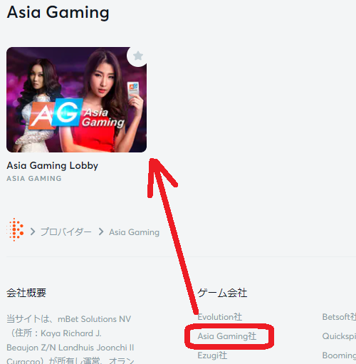 | プロバイダ | ASIA GAMING |