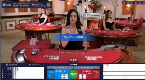 EZUGIは、本場カジノを中継したカジノルームがあり、本場カジノでプレイしている感覚でライブバカラを楽しめます。