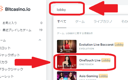 ONETOUCHのロビーを表示したい場合は、検索窓に「lobby」と入力すると見つかります。