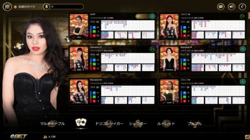 EBETは高級感のある雰囲気の中でライブバカラをプレイできます。