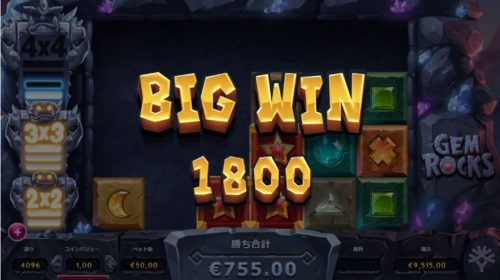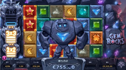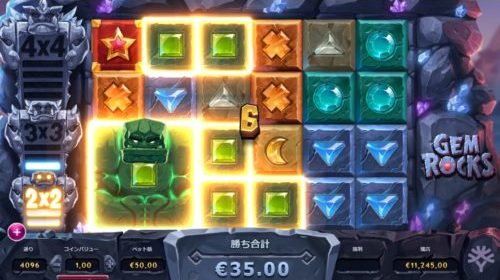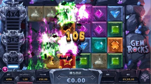 Yggdrasilの「Gem Rocks(ジェムロックス)」は、連鎖を狙って配当を稼ぐスロットです。