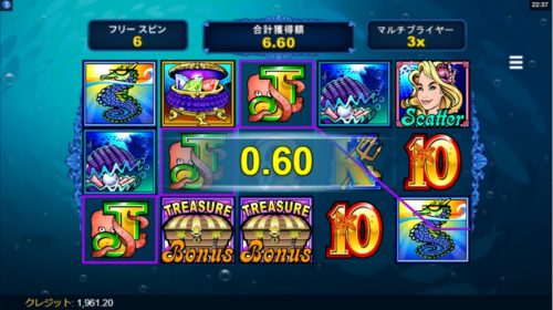 フリースピンはスキャッターのマーメイドシンボルが3つ以上出たら獲得です。