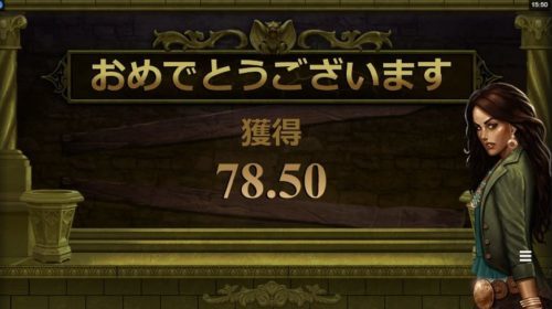 「AMBER」のフリースピンをした際には、最終的に78.50獲得しましたが、「TROY」のフリースピンをした際は189.90を獲得できました。